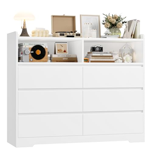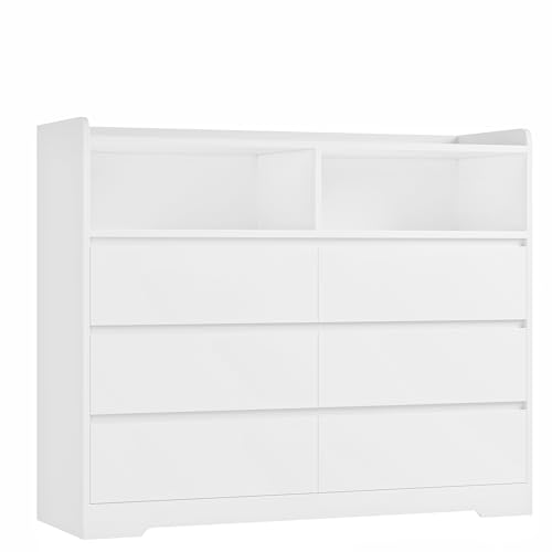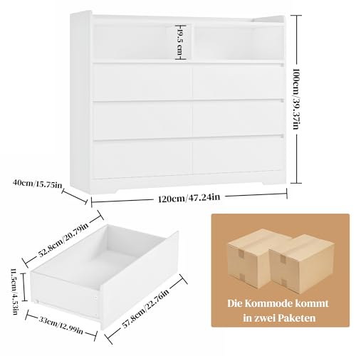 FOREHILL - خزانة أدراج لغرفة النوم تحتوي على 6 أدراج وفتحتين مفتوحتين بجانب واسع كبير لغرفة المعيشة أو المدخل من فورهيل، لون أبيض، مقاس 1.20 م × 40 سم × 1 م