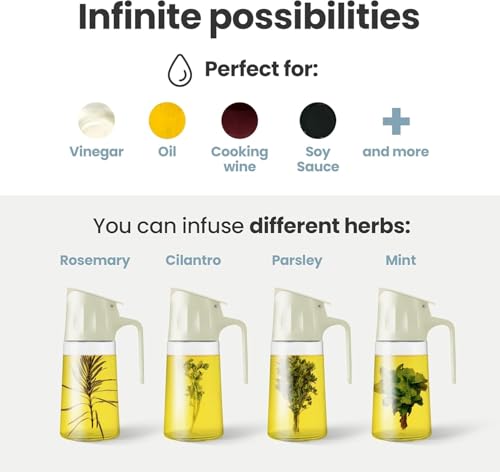 - ✅ 【سعة 500 مل】 توفر مساحة مثالية لتخزين الزيت، الخل، صوص الصويا أو تتبيلة السلطات مع تقليل الحاجة لإعادة التعبئة بشكل متكرر. 🥗