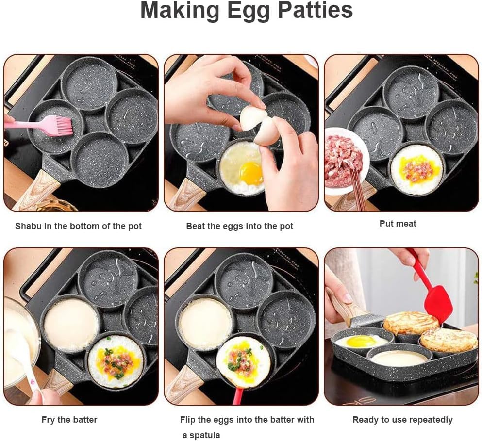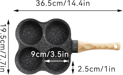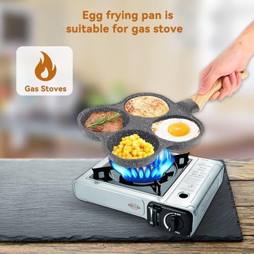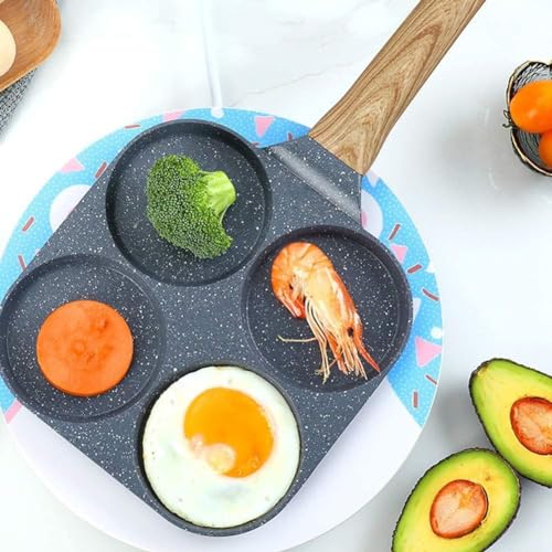 Generic - طاسة قلي جرانيت بـ4 أقسام مع طلاء مانع للالتصاق ومقبض خشبي بملمس بارد لطهي البيض والبان كيك والبرجر والسندويشات من فوريرا