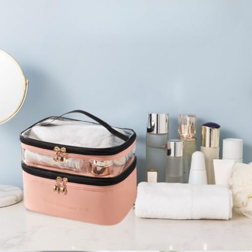 Generic - شنطة مكياج للسفر من الجلد 2 في 1 مقاومة للماء بسحاب مزدوج ومقبض حمل لمستحضرات التجميل والكريمات والمجوهرات وادوات النظافة من فوريرا - مثالية للرحلات والاستخدام اليومي