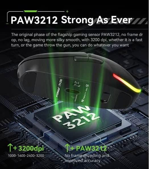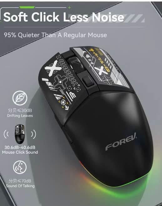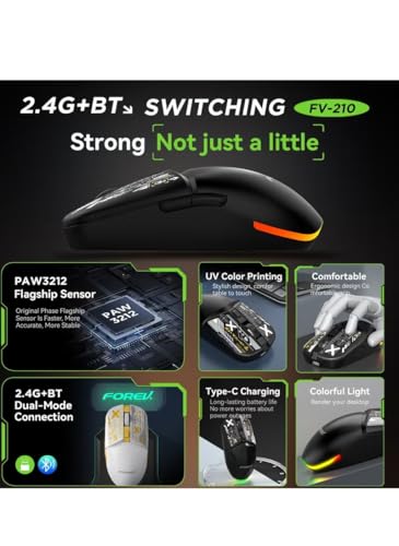 Generic - ماوس ألعاب فوريف إف ڤي‑٢١٠ ثنائي الوضع مع إضاءة آر جي بي – بلوتوث خمسة نقطة واحد ووايرلس اثنان فاصلة أربعة غيغاهرتز