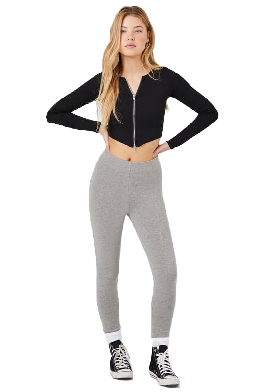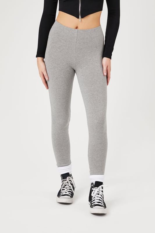 Forever 21 - فور ايفر 21 بنطلون لجينجز بيسيك مرتفع الخصر للنساء، مقاس S، لون رمادي مرقش