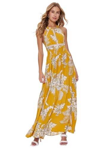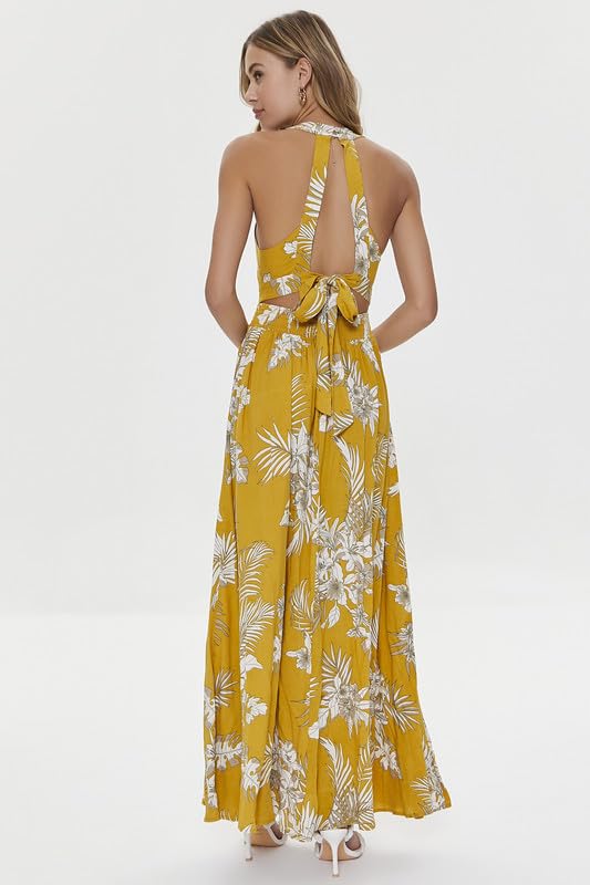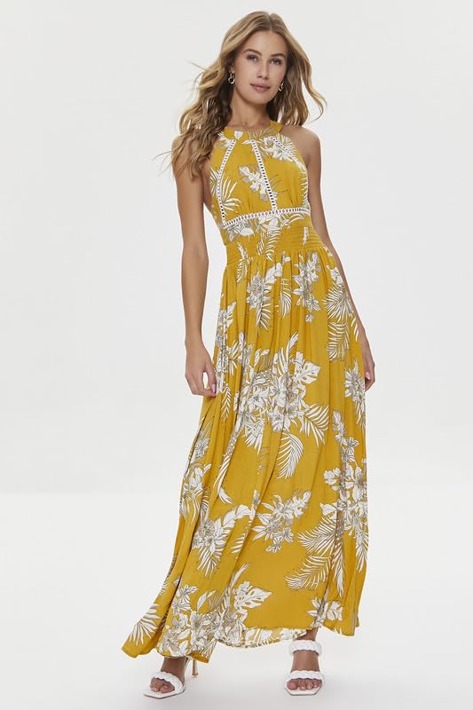 Forever 21 - فورافر 21 فستان طويل للنساء مقاس L اصفر/متعدد الالوان