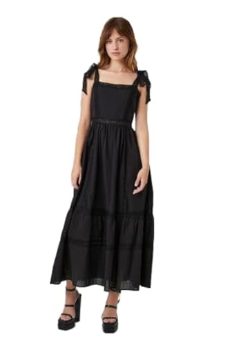 Forever 21 - فور ايفر 21 فستان ماكسي للنساء برباط واطراف من الدانتيل، مقاس L، لون اسود