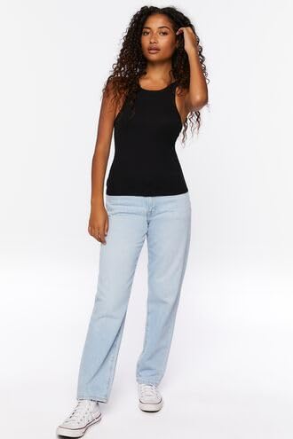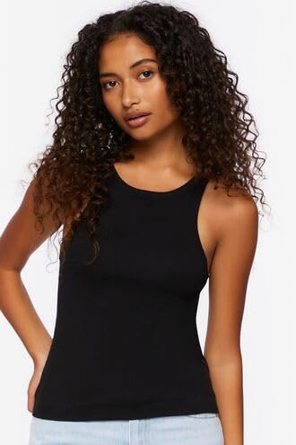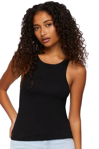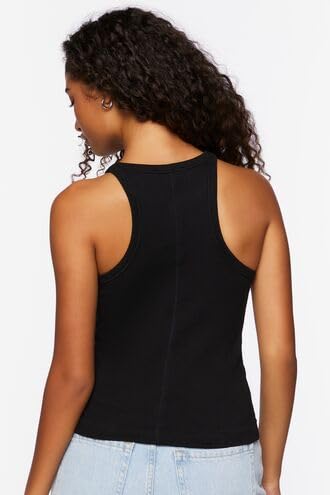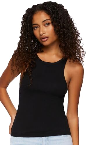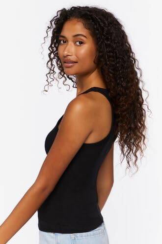 Forever 21 - فورافر 21 توب كات مضلع بظهر متقاطع للنساء، مقاس M، لون اسود