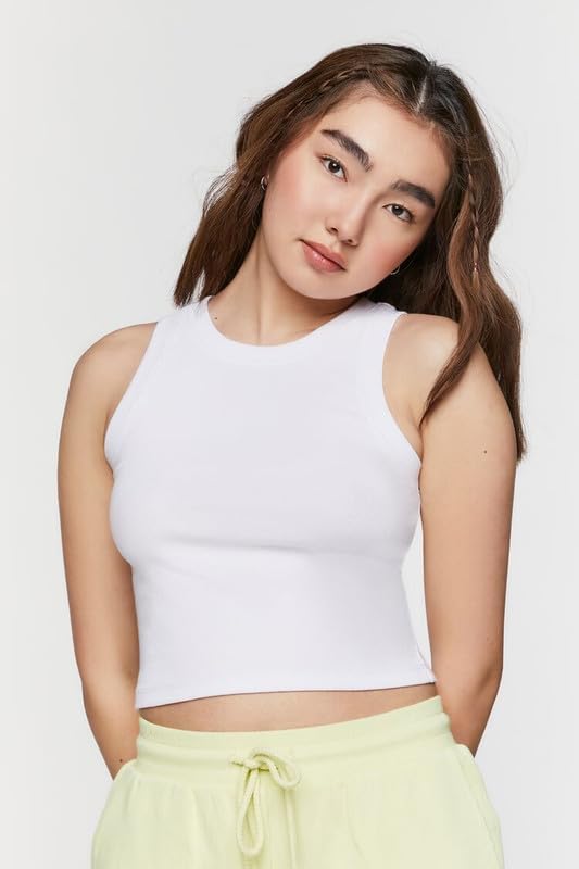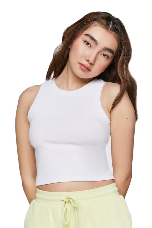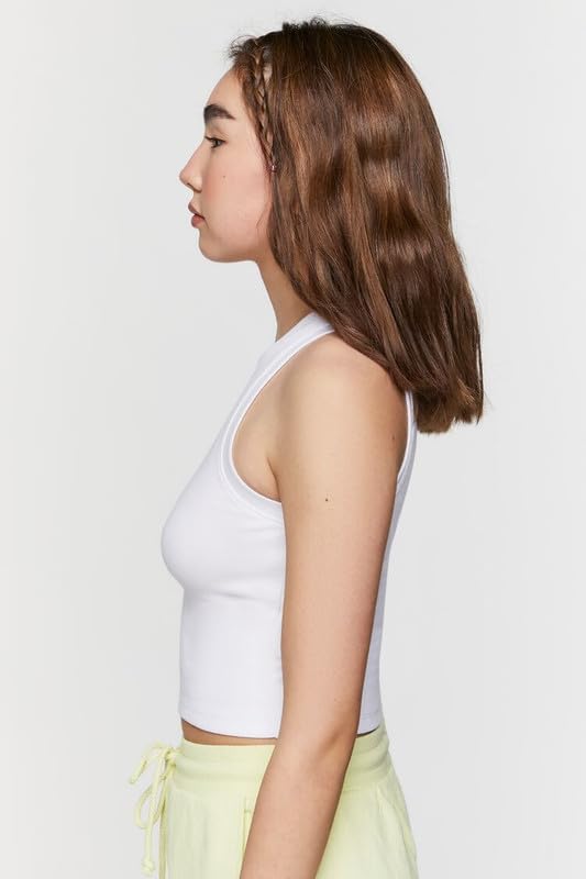 Forever 21 - فور ايفر 21 توب كات مضلع للنساء مقاس S لون ابيض