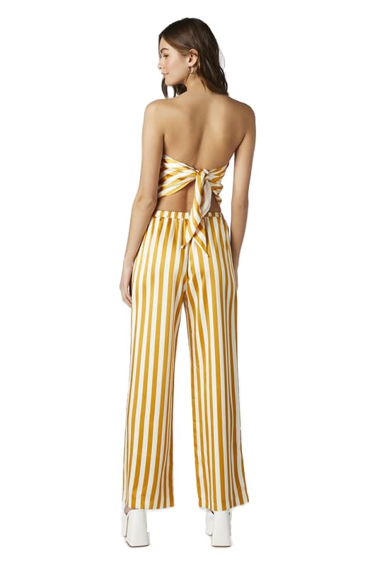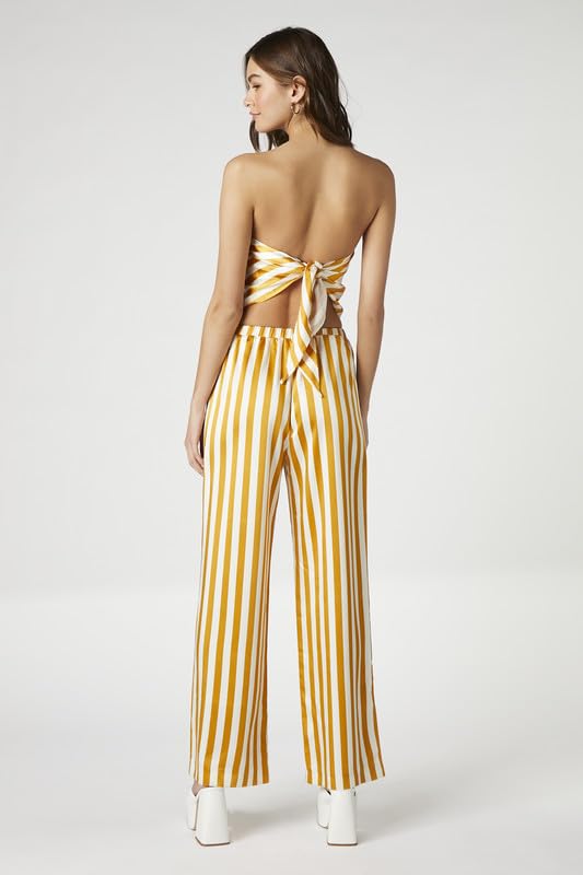 Forever 21 - فور ايفر 21 طقم مكون من توب ومنديل مخطط وبنطلون للنساء، مقاس L، لون عاجي/ متعدد الالوان