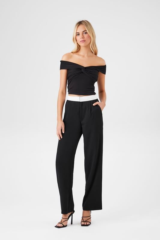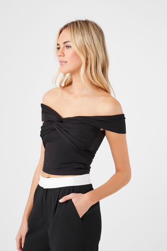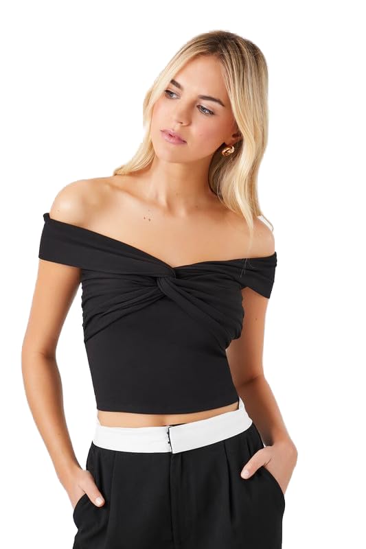 Forever 21 - فور ايفر 21 توب كات منسوج للنساء، مقاس L، اسود، 00479337Blackl