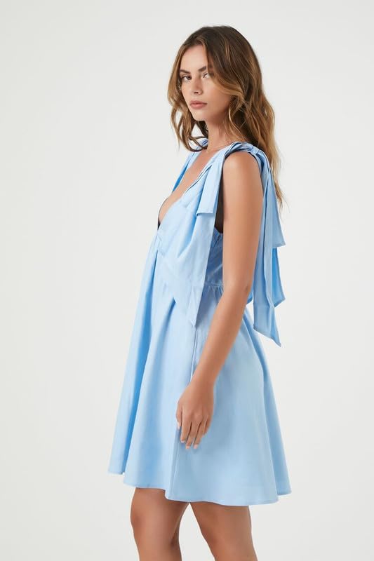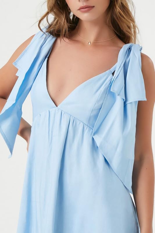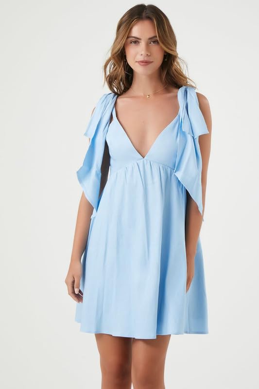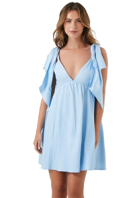 Forever 21 - فور ايفر 21 فستان بيبي دول قصير بحزام برباط للنساء، مقاس M، ازرق فاتح