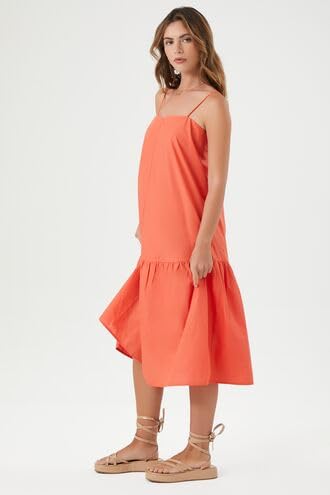 Forever 21 - فستان متوسط الطول بحمالات رفيعة للنساء من فوريفر 21، مقاس M، برتقالي