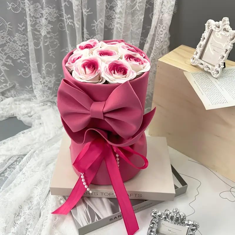 Generic - صندوق هدايا ورد الحب الأبدي - ورود صناعية مع لؤلؤ وشريط أنيق - هدية مثالية للذكرى السنوية وعيد الحب وأعياد الميلاد (Fuchsia)