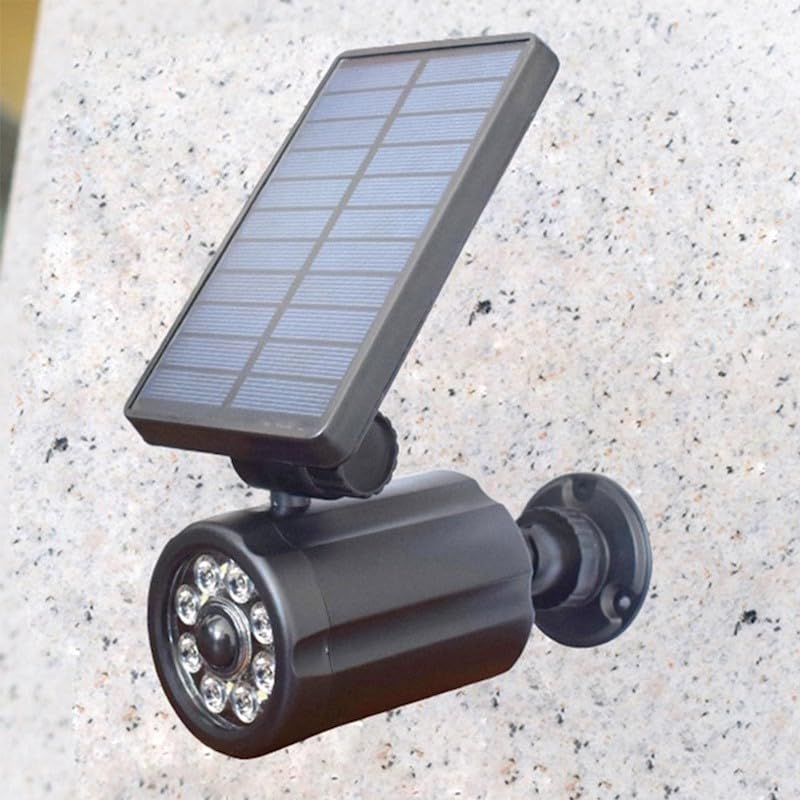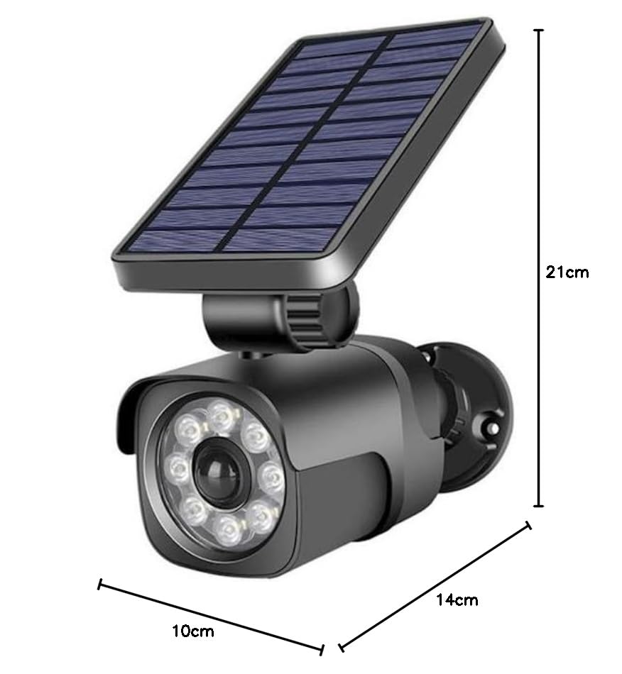 FOREVER - فور ايفير مصباح LED يعمل بالطاقة الشمسية FLS-25 للاستخدام الخارجي مع مستشعر حركة PIR وكاميرا وهمية 4 واط 300 لومن 6000 كلفن 1500 مللي امبير في الساعة ليثيوم ايون مقاومة للماء IP65 للمدخل والحديقة والفناء من سوناري