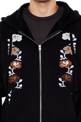 Forever 21 - سويت شيرت بغطاء للرأس وسوستة مطرز بالزهور للرجال من فورايفر21