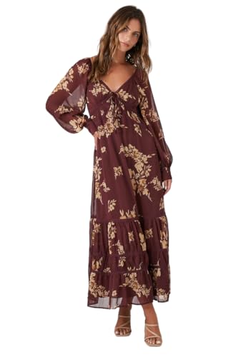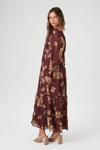 Forever 21 - فستان شيفون متوسط الطول بطبعة زهور للنساء من فوريفر 21