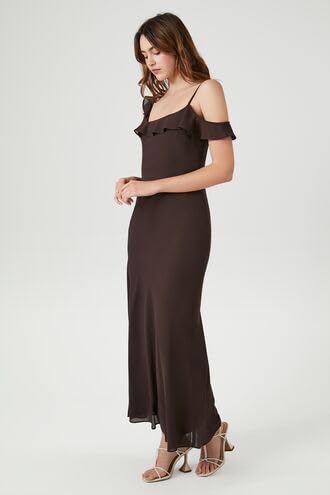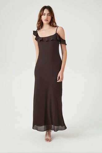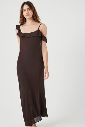 Forever 21 - فورافر 21 فستان ماكسي سهل الارتداء من الشيفون بحواف مكشكشة للنساء