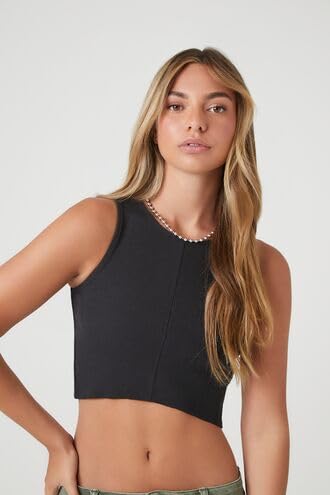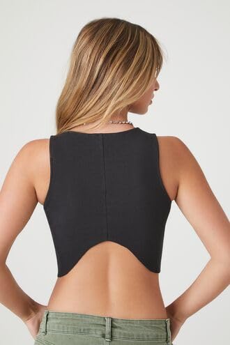 Forever 21 - توب كات قصير منسوج ومضلع للنساء
