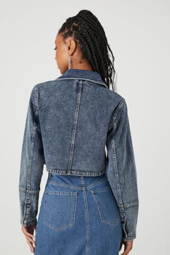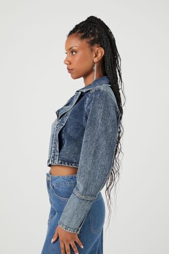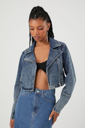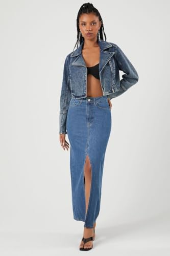 Forever 21 - جاكيت موتو جينز مشقوق للنساء من فورايفر 21