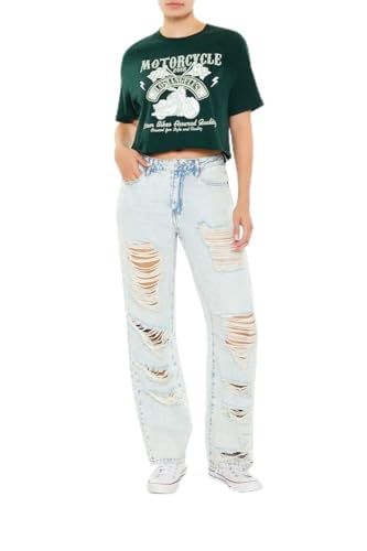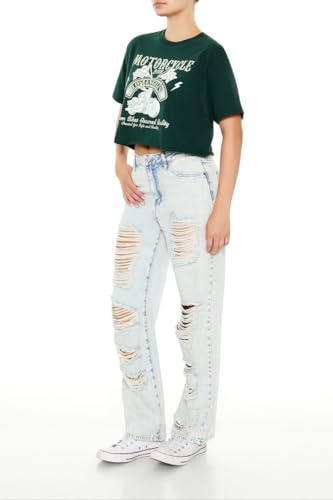 Forever 21 - بنطلون جينز ديسترويد بخصر مرتفع للنساء من فورايفر 21