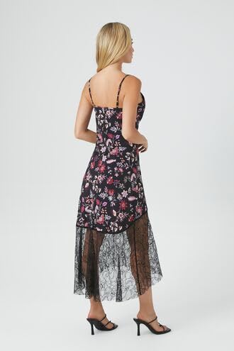 Forever 21 - فستان سهل الارتداء متوسط الطول مزين بالزهور للنساء