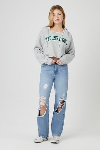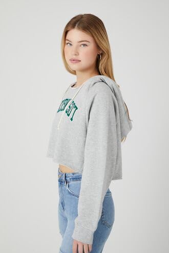 Forever 21 - سويت شيرت بغطاء رأس مطرز للنساء مقاس Lone Angeles من فوريفر 21