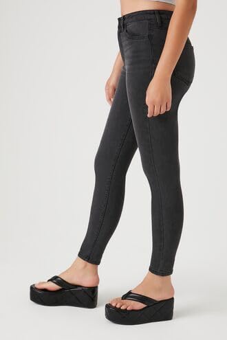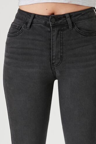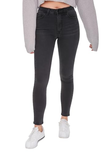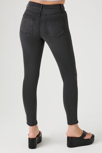 Forever 21 - بنطلون جينز اسينشال سكيني متوسط الارتفاع للنساء من فورايفر 21، لون اسود باهت مقاس 25