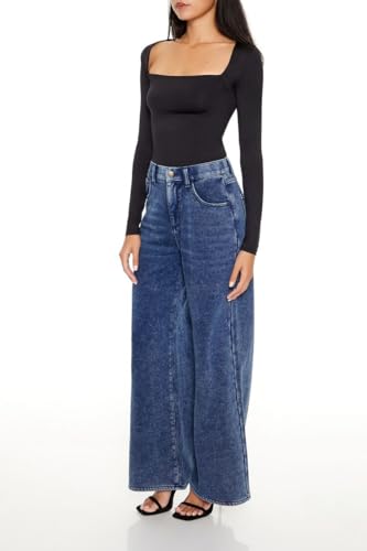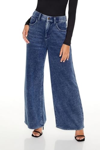 Forever 21 - بنطلون رياضي من قماش الدنيم الصناعي للنساء من فوريفر 21