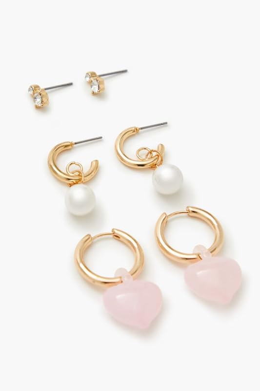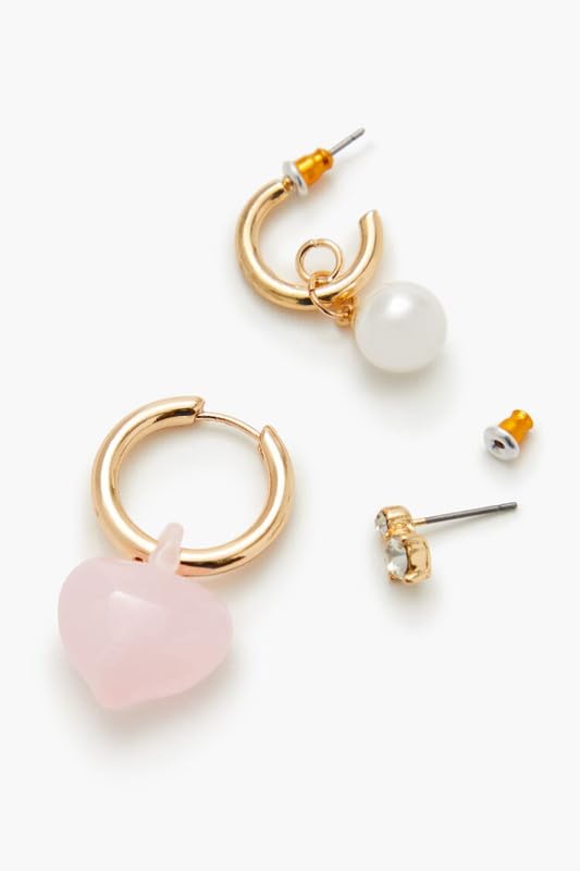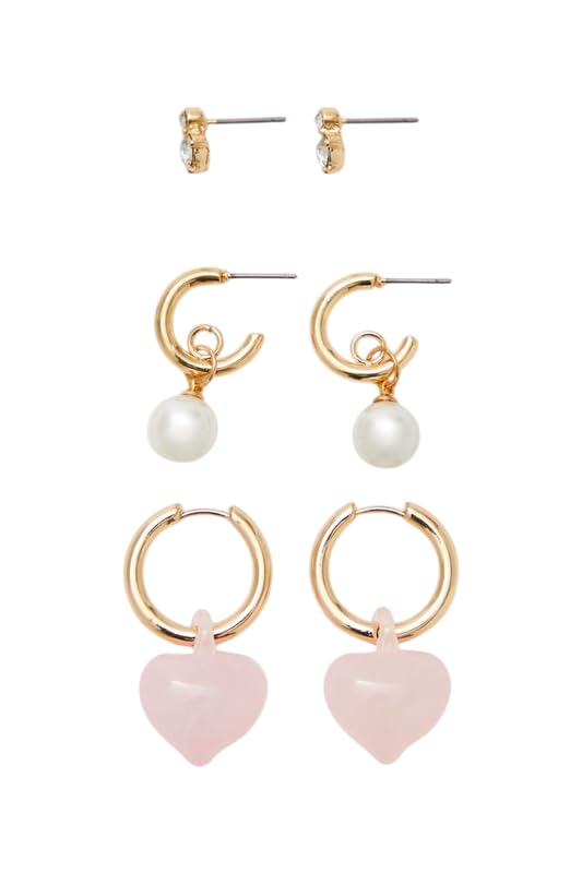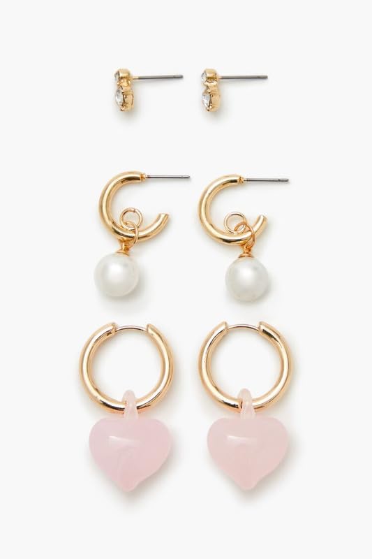 Forever 21 - طقم اقراط حلقية ومرصعة باللؤلؤ الصناعي للنساء من فورايفر 21