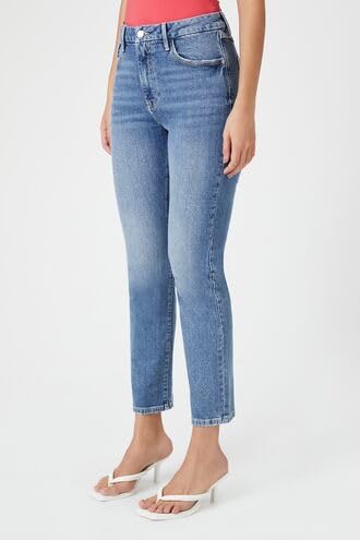 Forever 21 - بنطلون جينز بقصة مستقيمة وخصر مرتفع للنساء من فورايفر 21