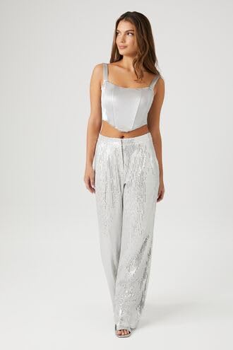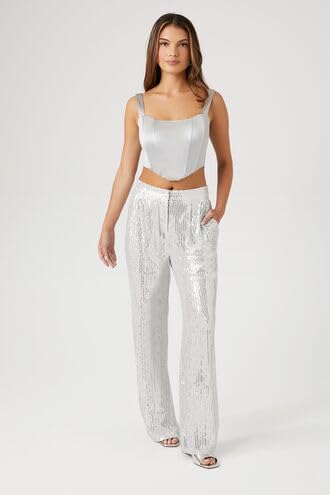 Forever 21 - بنطلون بخصر منخفض مزين بالترتر للنساء من فوريفر 21