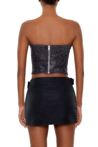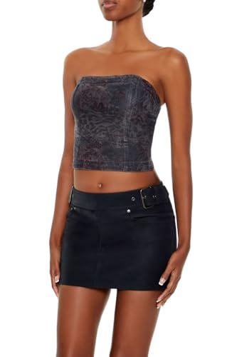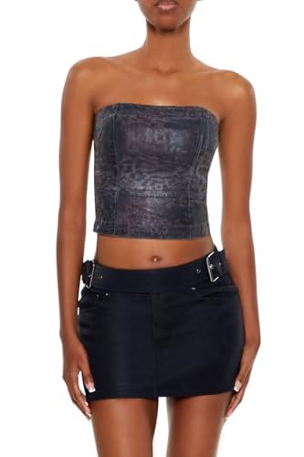 Forever 21 - بلوزة نسائية من قماش الدنيم بنقشة جلد الفهد ميتاليك من فورايفر 21