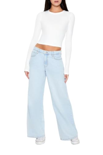 Forever 21 - بنطلون جينز فضفاض متوسط الارتفاع للنساء من فورايفر 21
