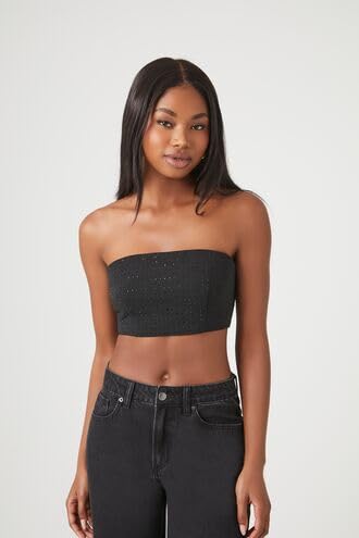 Forever 21 - توب قصير مرصع باحجار الراين للنساء من فوريفر 21