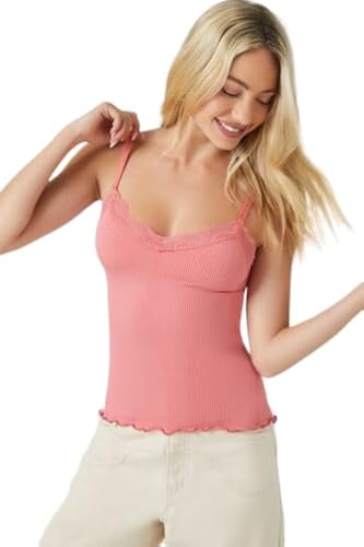 Forever 21 - بلوزة كامي مضلعة بحواف دانتيل للنساء