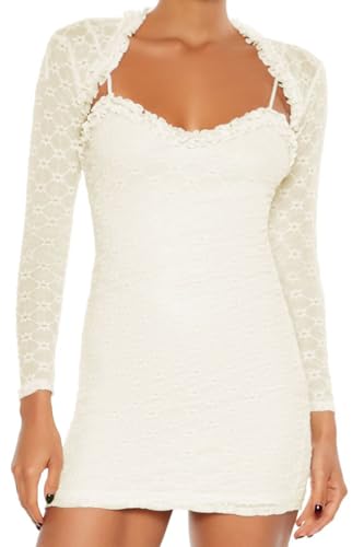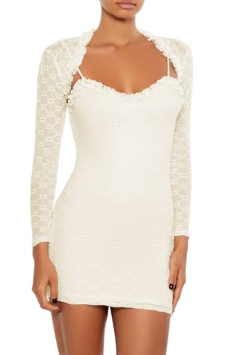 Forever 21 - طقم فستان دانتيل قصير بكشكشة مع جاكيت خفيف للنساء من فوريفر 21