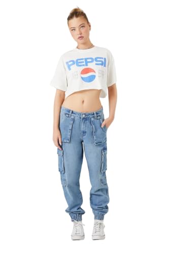 Forever 21 - بنطلون رياضي كارجو جينز مرن للنساء من فورايفر 21
