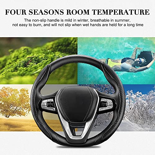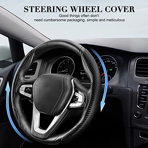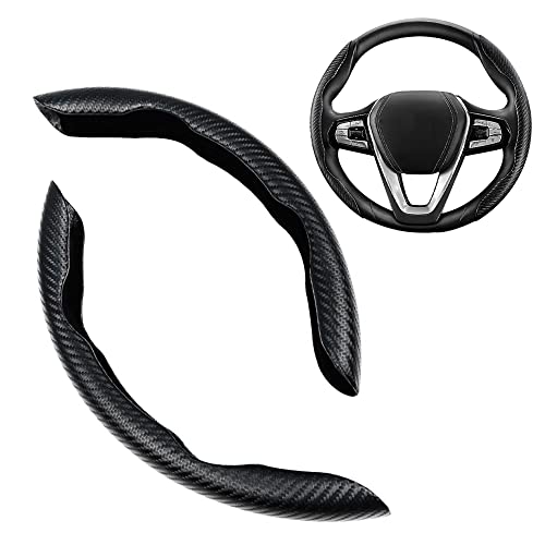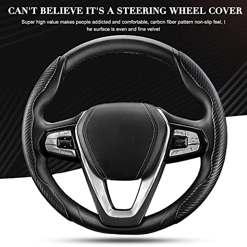 Foreverup - غطاء طارة دركسيون السيارة المعزز ذو توافق عالمي من فوريفر اب، غطاء من الكربون غير قابل للانزلاق، اكسسوارات داخلية خفيفة الوزن لتزيين السيارة، لمعظم السيارات وسيارات الدفع الرباعي (اسود)