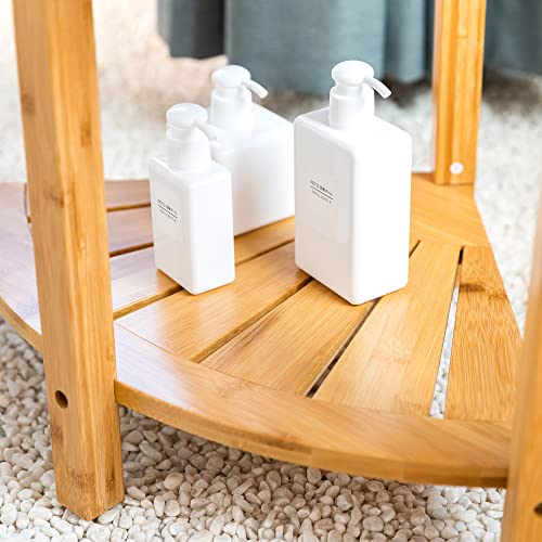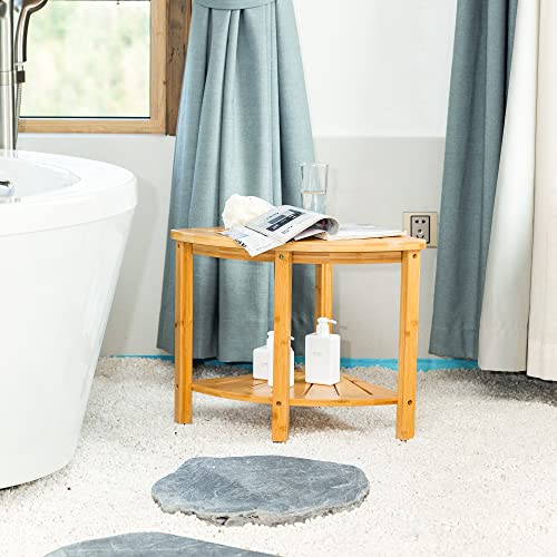 Forevich - فوريفيش مقعد زاوية استحمام من الخيزران مع رف، مقعد زاوية للاستحمام الداخلي، طبيعي