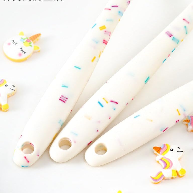 - مجموعة متعددة الاستخدامات: مجموعة ملاعق مسطحة كاملة من السيليكون مكونة من 3 قطع تتميز بفرشاة دهن وملعقة سباتولا، وملعقة سباتولا قياسية باللون الأبيض مع تصميم بنمط قصاصات ورقية مرحة