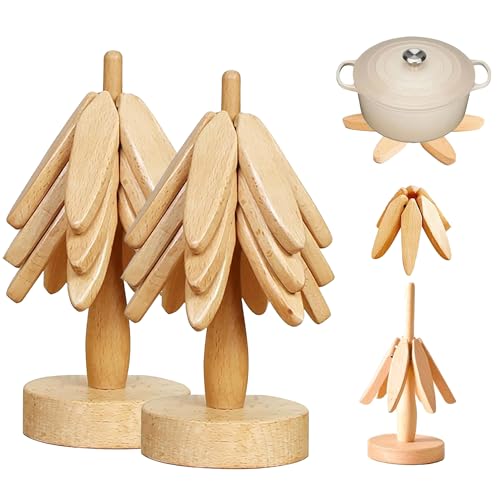 forubar - حامل قواعد أكواب مع قواعد أكواب من الخشب بتصميم شجرة قابل للطي للأطباق والأواني الساخنة وحلة الطهي مقاومة للحرارة من فوروبار، 20 سم قطعتان