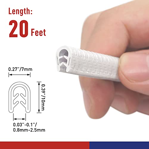 FOSLUOC - واقيات حواف باب السيارة بدون صمغ، 20 قدم من المطاط على شكل حرف U للسيارات العادية والدفع الرباعي والشاحنات الاشياء الحادة من فوسلووك تمنع الاصطدام والخدوش. (تناسب الحافة 0.07 سم - 0.22 سم ابيض)