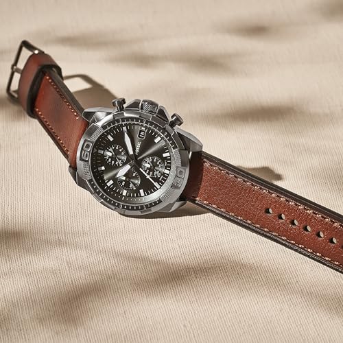 Fossil - فوسيل ساعة برونسون كرونوغراف جلد 44 ملم - FS5855، بني، مقاس واحد، 44 ملم برونسون كرونوغراف جلد - FS5855, بني, ساعة برونسون كرونوغراف جلد 44 ملم - FS5855