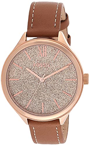 Fossil - ساعة انالوج بسوار جلدي للنساء من فوسيل BQ3178 - بيج داكن و ذهبي وردي، 36 ملم