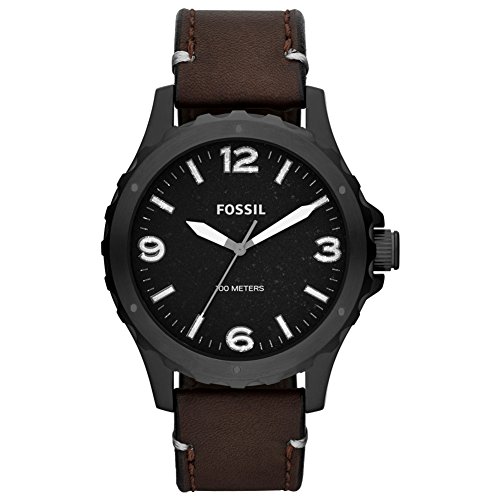 Fossil - ساعة كاجوال دائرية للرجال، انالوج بعقارب من فوسيل، موديل JR1450، بمينا أسود، بسوار بني