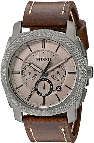 Fossil - ساعة فوسيل ماشين للرجال بمينا بني وبسوار جلدي كرونوغراف - FS5215