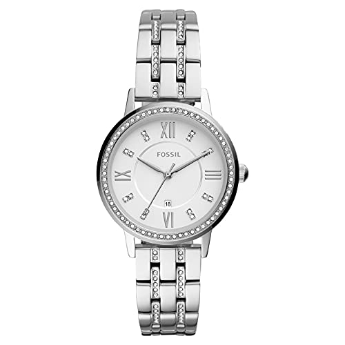 Fossil - ساعة ES4880 من الفولاذ المقاوم للصدأ للنساء من فوسيل، لون فضي، قطر الهيكل 34 ملم، تناظري