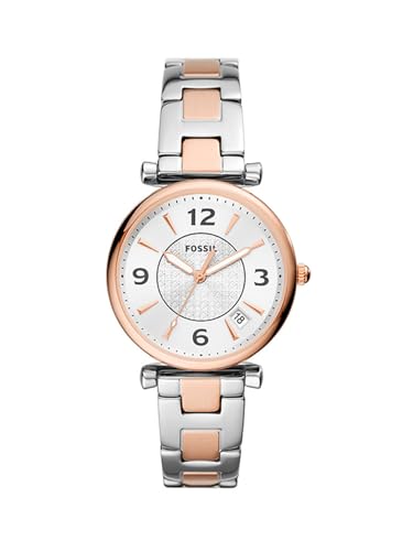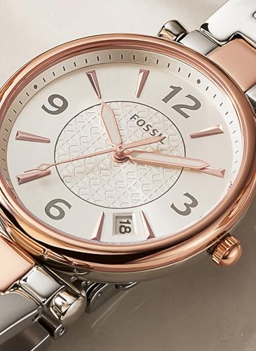 Fossil - ساعة انالوج كوارتز بسوار جلد للنساء من فوسيل، ذهبي وردي مع سوار