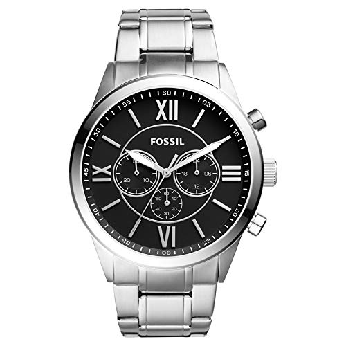 Fossil - ساعة فلين انالوج كرونوجراف بسوار ستانلس ستيل للرجال - فضي واسود من فوسيل