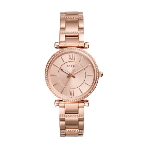 Fossil - ساعة بمينا بلون روز جولد وسوار من الستانلس ستيل للنساء من فوسيل - ES4301, ذهبي، انالوج
