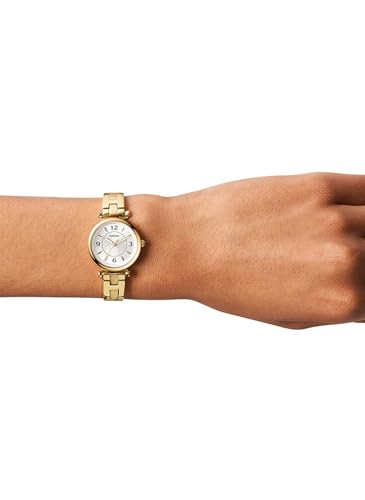Fossil - ساعة كاجوال من فوسيل ES5203 انالوج بمينا أبيض بسوار ذهبي للنساء