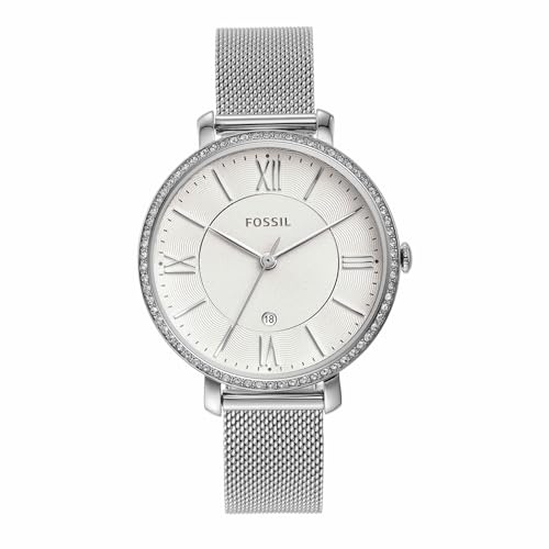 Fossil - ساعة بحركة كوارتز وعرض أنالوج وسوار من الفولاذ المقاوم للصدأ للنساء من فوسيل، لون فضي، موديل ES4627